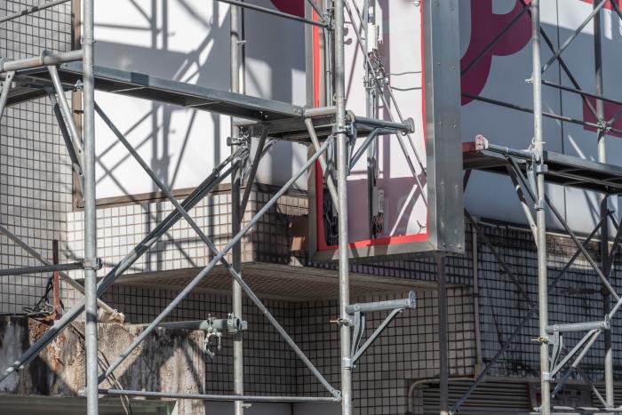 壁面に取り付けられた看板の撤去は、専門的な技術と経験が求められる工事です。看板の材質やサイズ、設置場所によっては、安全に撤去するためには専門的な機材や道具が必要となります。また、壁面を傷つけず、周囲の安全を確保しながら看板を取り外すためには、適切な手順を踏む必要があります。
